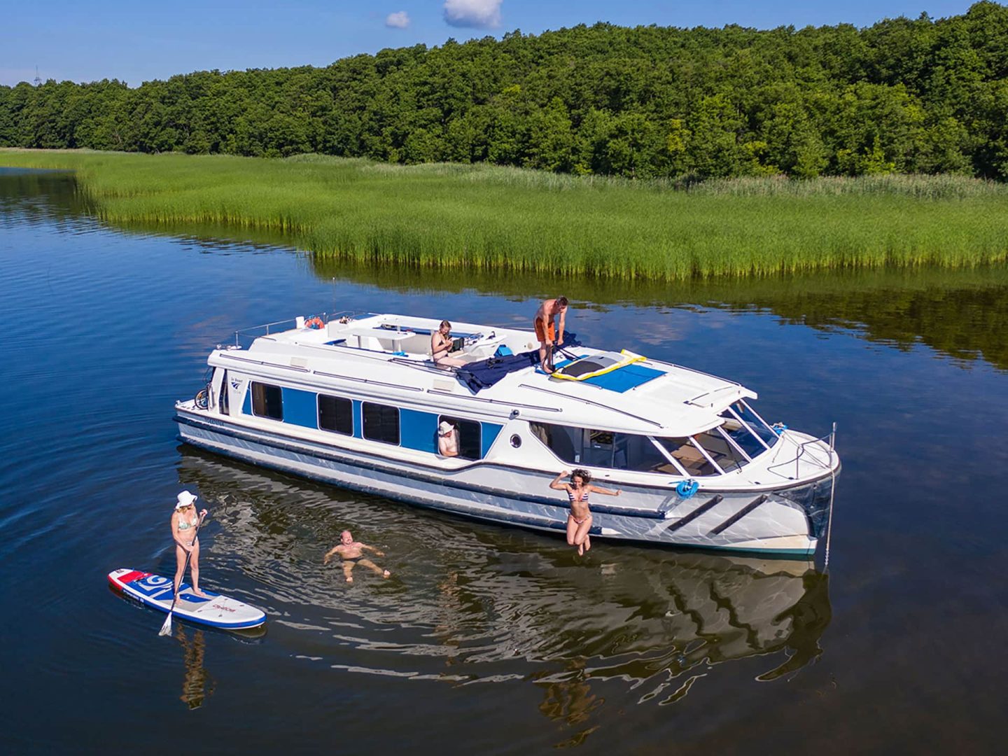 Per il noleggio delle houseboat dalla base di Marina Wolfsbruch non è necessaria la patente nautica. Se si vuole visitare Berlino in barca è obbligatoria la patente nautica.