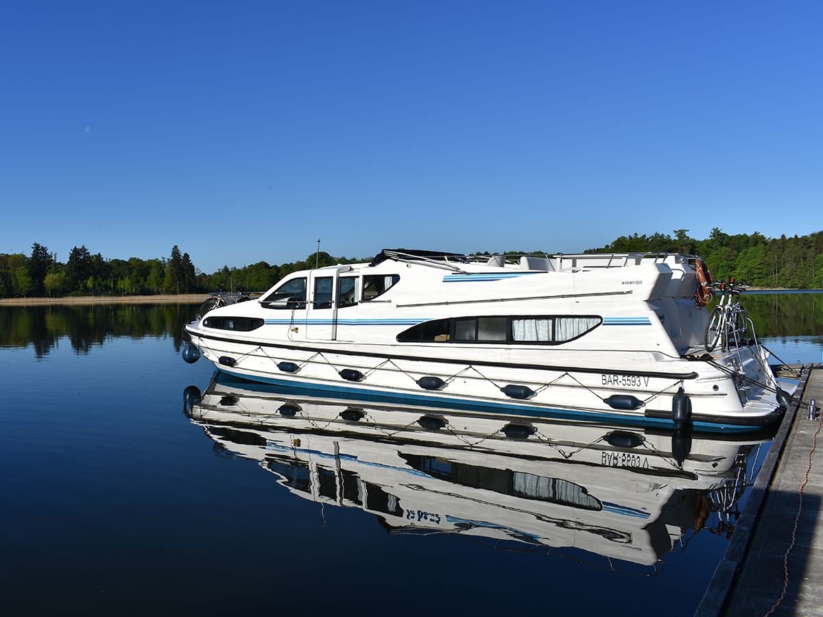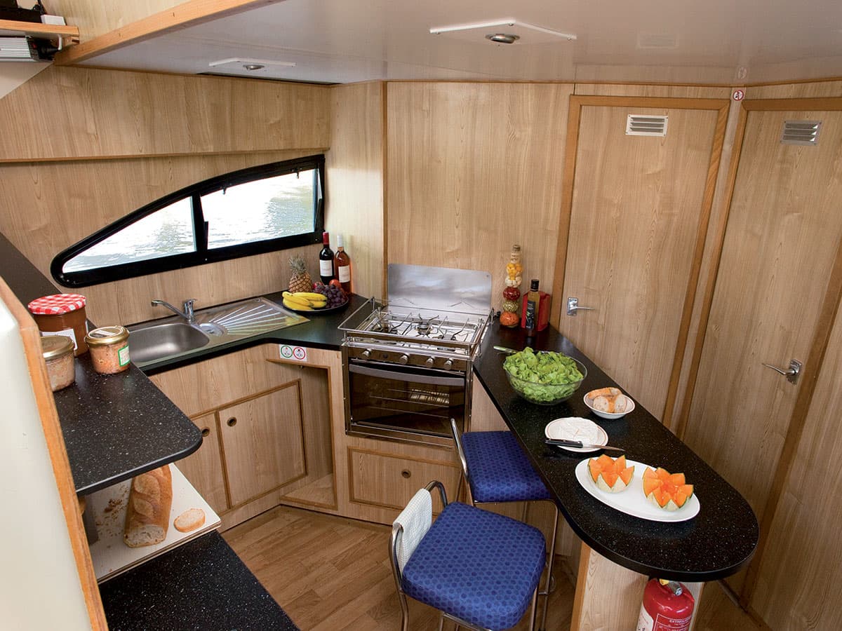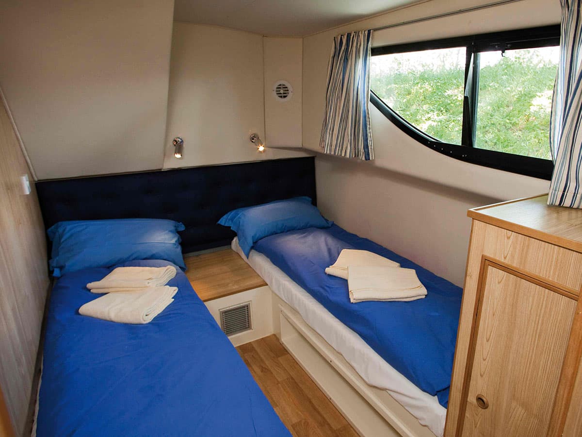 L’Houseboat Magnifique è dotata di 4 cabine, due a prua con letti matrimoniali e due a poppa con letti singoli convertibili in matrimoniali. Può ospitare fino a 10 persone che possono disporsi comodamente sia nell’ampio salone che sul ponte superiore, dove è ubicata anche la seconda postazione di pilotaggio.