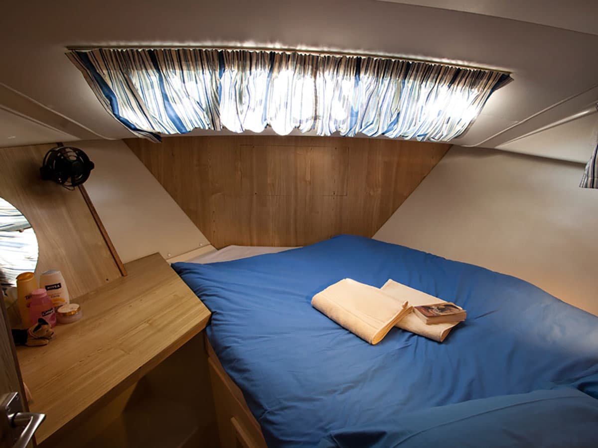 4 cabine: due cabine a prua con letto matrimoniale e due a poppa con letti singoli convertibili in matrimoniale e bagni privati