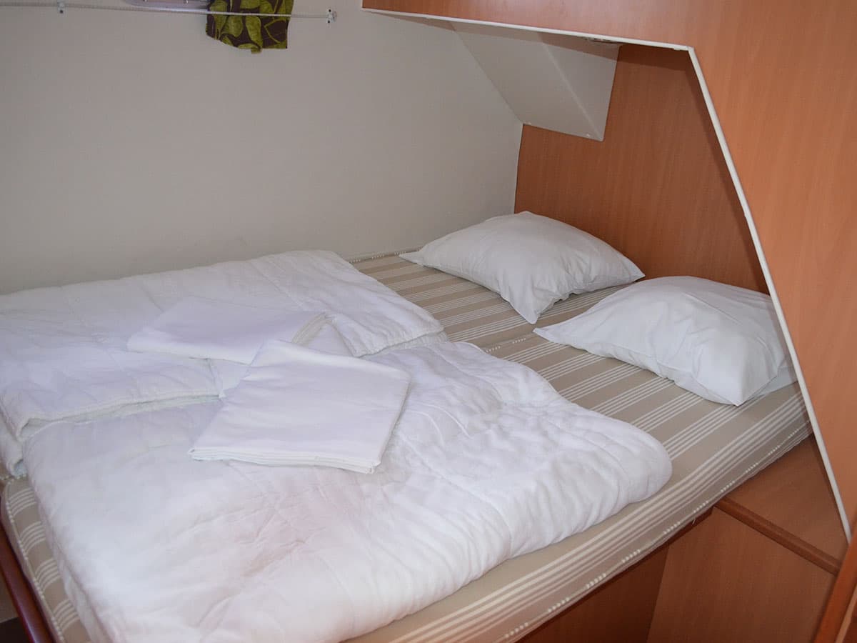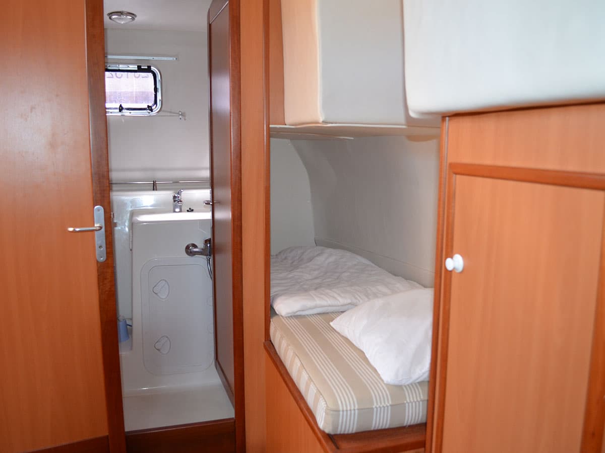 L’Houseboat Tarpon 32 è dotata di 2 cabine triple con letto matrimoniale e letto singolo, disposte una a prua e una a poppa, ognuna con bagno privato, per il massimo della privacy.